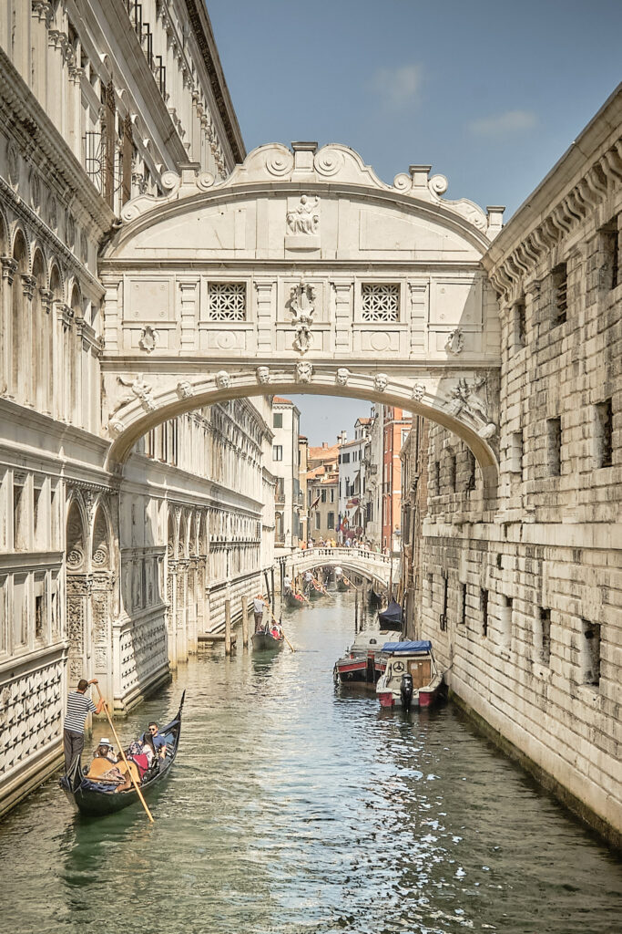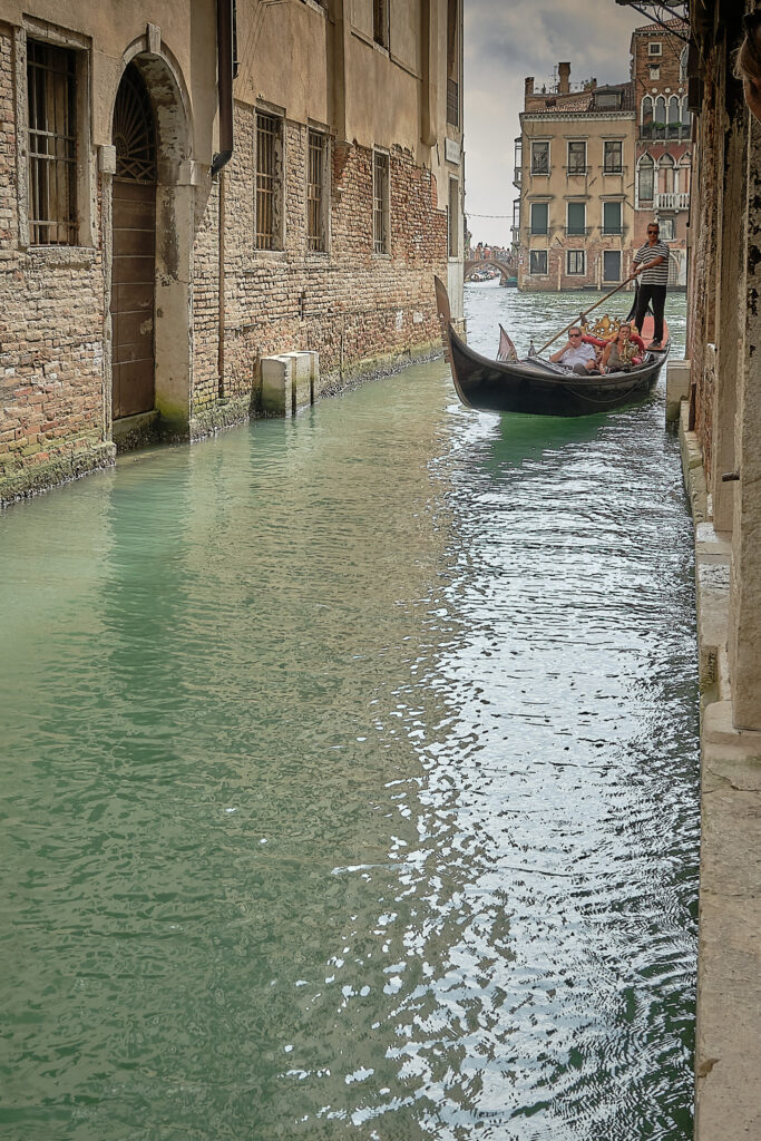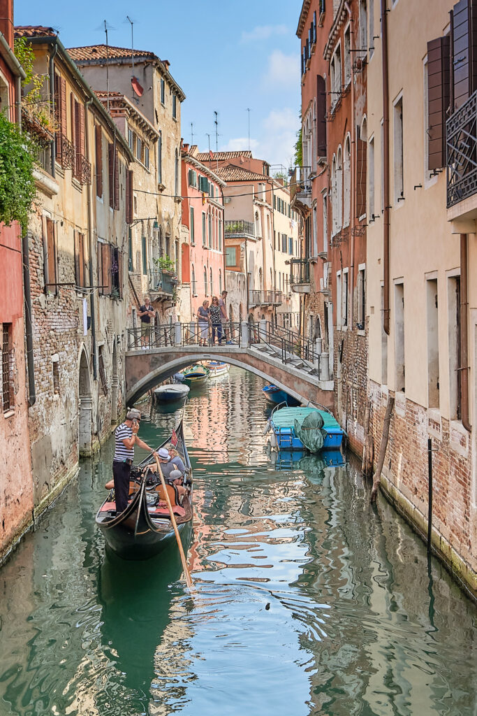 Les canaux étroits imposent leur propre logique. Peu à peu, les murs se rapprochent, les perspectives se tendent, et l’eau devient un axe de lecture. Photographier Venise, c’est accepter cette contrainte, composer avec l’étroitesse, la proximité et les reflets instables. Dans ce rythme lent, les gondoles avancent presque silencieusement, comme si le temps lui-même s’adaptait à la ville.